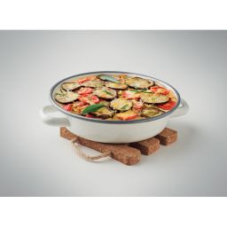 Sottopentola in sughero a forma di posate con corda di juta. Il sughero è un materiale naturale al 100%. A causa della sua natura strutturale e della porosità della superficie, il risultato di stampa finale per articolo potrebbe presentare deviazioni.