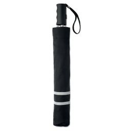 Ombrello 21” double face in pongee con manico in plastica nera. Cuciture in grigio metallizzato. Astuccio coordinato. Apertura automatica.